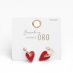 Enciende tu look con estos Aretes Bañado en Oro Funky Fish. Su diseño de argollas doradas se complementa con dijes de corazón en un rojo intenso esmaltado, creando una pieza mística y audaz que aporta un contraste sofisticado y lleno de energía a tu rostro.