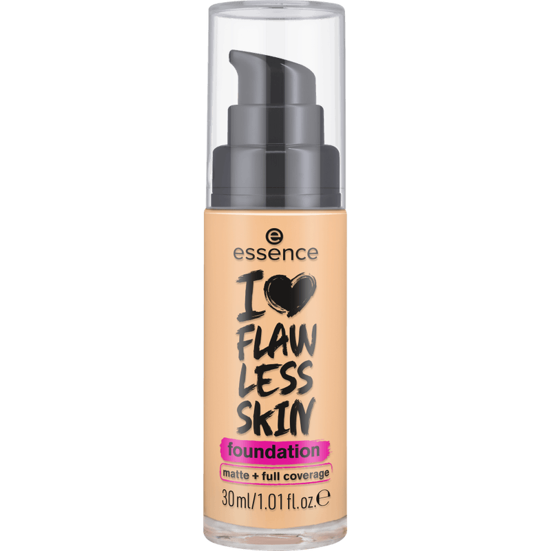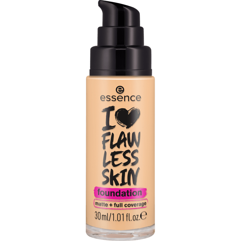 Base I Love Flawless 30 ML Essence: Base de maquillaje de alta cobertura para un acabado mate natural. A pesar de su textura ligera, la base de maquillaje I LOVE FLAWLESS SKIN es completamente opaca y crea un acabado mate natural. Sin obstruir los poros, la fórmula permanece más tiempo y también protege la piel con SPF 20.