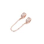 Cadena de Seguridad Brillante Oro Rosa: Tendencia y Máxima Protección\n\nEsta cadena es la combinación perfecta de funcionalidad y moda. El baño de oro rosa con doble fila de cristales la hace una pieza de declaración que protege tu pulsera con estilo.\n\n- Diseño: Cadena de seguridad con doble fila de cristales transparentes en los clips.\n- Material Base: Bronce.\n- Baño: Oro Rosa - 10 Mills.\n\nCasos de Uso: Ideal para pulseras de oro rosa o para crear un look elegante con pulseras plateadas.\n\nInformación Técnica:\n- Tipo de Baño: Oro Rosa - 10 Mills.\n- Medidas: 1.2cm (clips) / Cadena: 7cm (pandora).