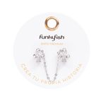Cadena de Seguridad Brillante Plateada: Lujo y Protección\n\nEsta cadena de seguridad asegura tu pulsera de charms en caso de apertura accidental. La doble fila de cristales a lo largo de los clips y su brillo de rodio la convierten en un accesorio de lujo.\n\n- Diseño: Cadena de seguridad con doble fila de cristales transparentes en los clips.\n- Material Base: Bronce.\n- Baño: Rodio.\n\nCasos de Uso: Indispensable para pulseras de alto valor. Longitud de cadena ideal para el movimiento de charms.\n\nInformación Técnica:\n- Tipo de Baño: Rodio.\n- Medidas: 1.2cm (clips) / Cadena: 7cm (pandora).\n\nProtección de lujo para tu colección. ¡Compra esta cadena de seguridad Funky Fish!