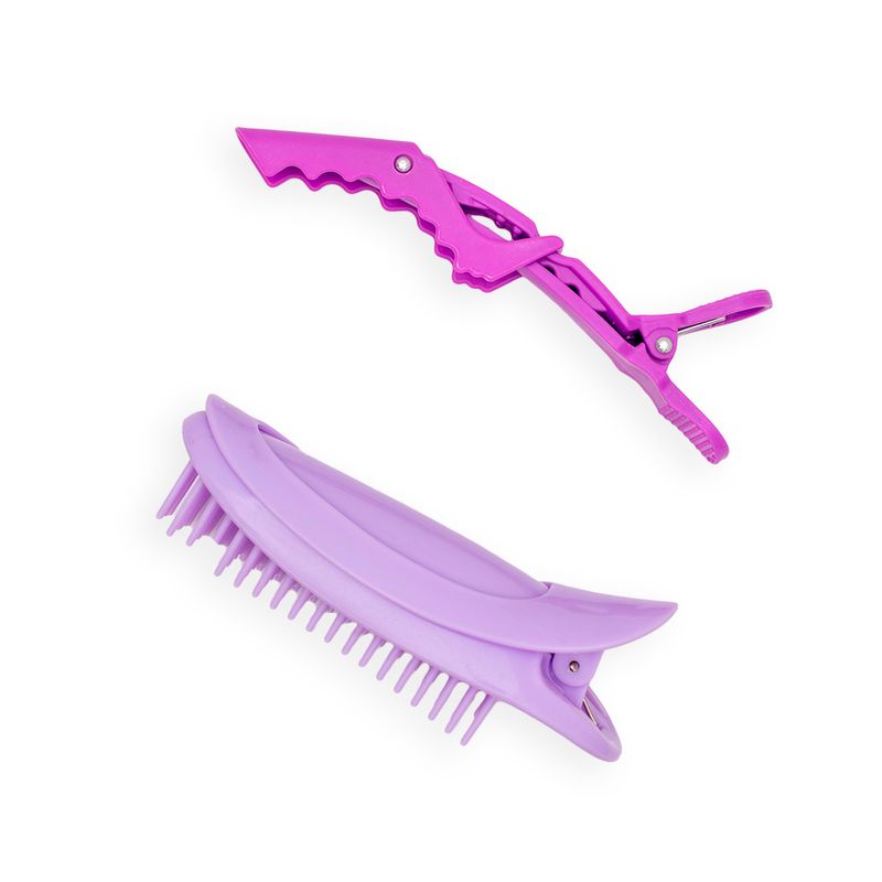 Las pinzas de cabello Funky Fish morado son ideales para separar y sujetar mechones mientras peinas, planchas o secas tu cabello. Resistentes y cómodas para un manejo fácil y práctico.