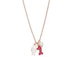 ¿Buscas un accesorio que combine tradición y modernidad? Este collar presenta un llamativo dije de coral rojo acompañado de un pez esmaltado en blanco y una perla clásica, creando una armonía visual única que resalta sobre el brillo del oro. Una joya diseñada para almas creativas.