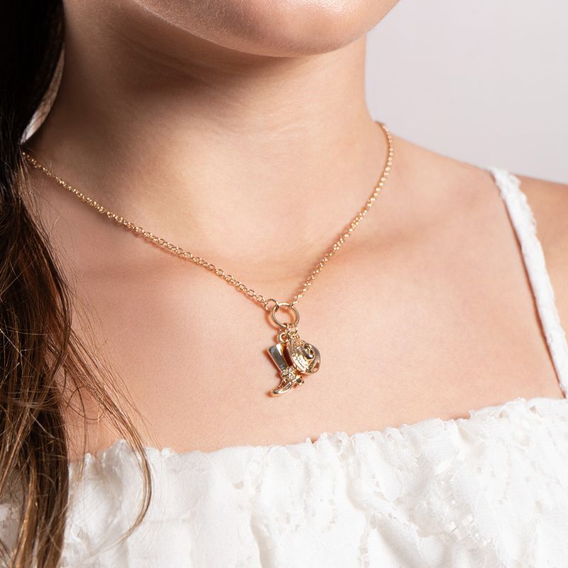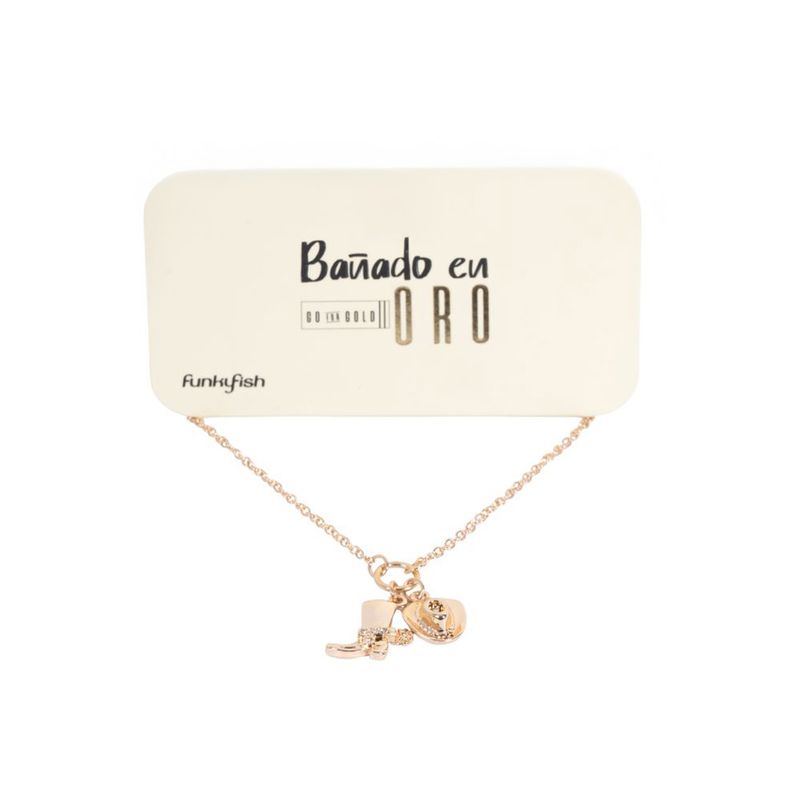 Este collar incluye varios dijes simbólicos bañados en oro. Expresa tu esencia a través de cada detalle.