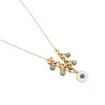 ¡Elegancia con un toque místico! Este collar dorado de Funky Fish destaca por su diseño de doble capa con delicadas cuentas turquesas y un dije central texturizado. Es la pieza perfecta para añadir brillo y un aire bohemio a tu estilo diario o a una ocasión especial.