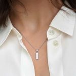 Dije de barra plateada con un estilo minimalista que aporta una elegancia moderna a cualquier look. Su diseño limpio lo convierte en una pieza ideal para usar a diario o combinar en capas. Una joya refinada que puedes personalizar y llevar como un toque distintivo en tu colección.