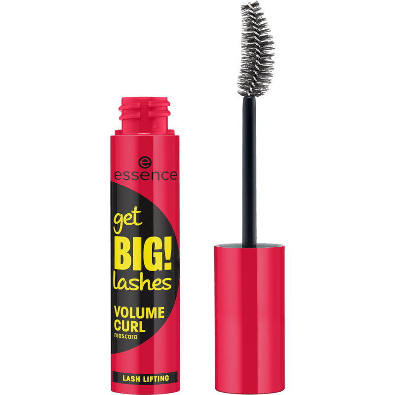 Ess. Get Big! Lashes Volume Curl Mascara: ¡Pestañas rizadas! El gran cepillo de fibras curvado consigue el máximo volumen, unas pestañas curvadas y más voluminosas, mientras que la textura negra garantiza una mirada intensa. Oftalmológicamente probado.