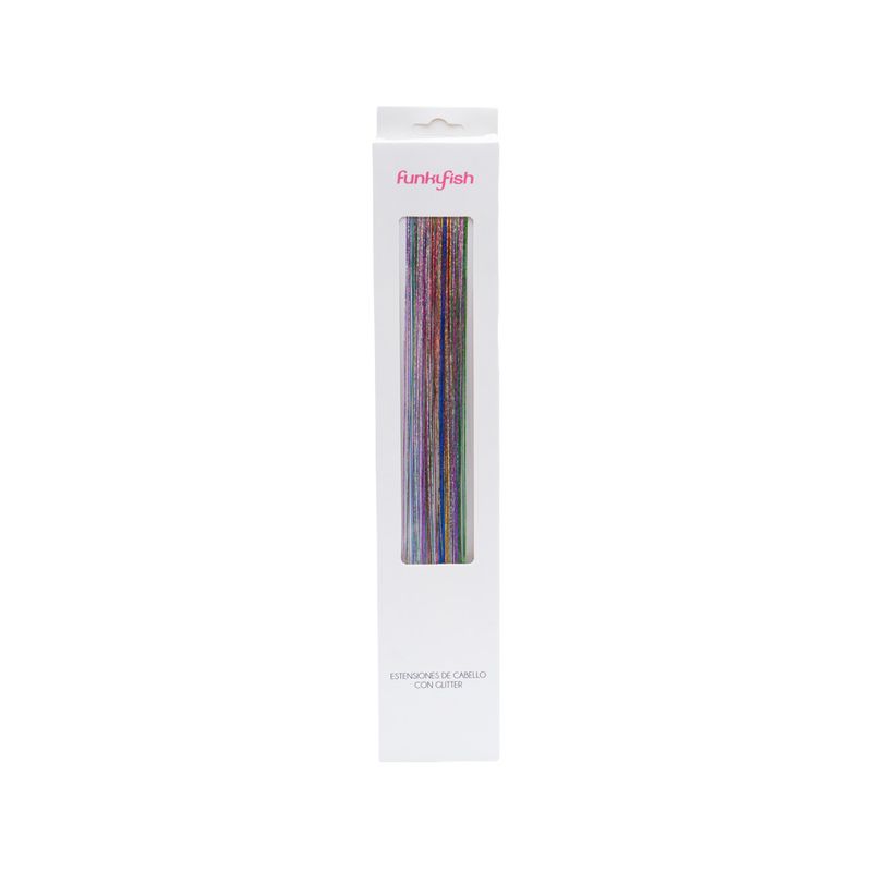 Extensión de cabello glitter multicolor Funky Fish — brillo arcoíris para transformar cualquier peinado. - Destellos multicolor - Clip cómodo y seguro - Perfecta para festivales y fotos - Combínala con otras para más volumen. Hazlo divertido con Funky Fish. ¡Compra online ya!