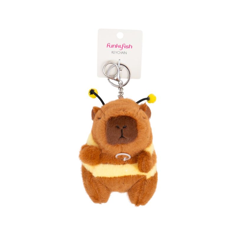 Disfruta de la compañía de este Llavero Funky Fish de capibara. Su diseño de peluche café ultra suave incluye divertidas antenas de abeja y pequeñas alas celestes. Un accesorio místico y tierno, ideal para decorar tu bolso con un toque de originalidad y calma silvestre.