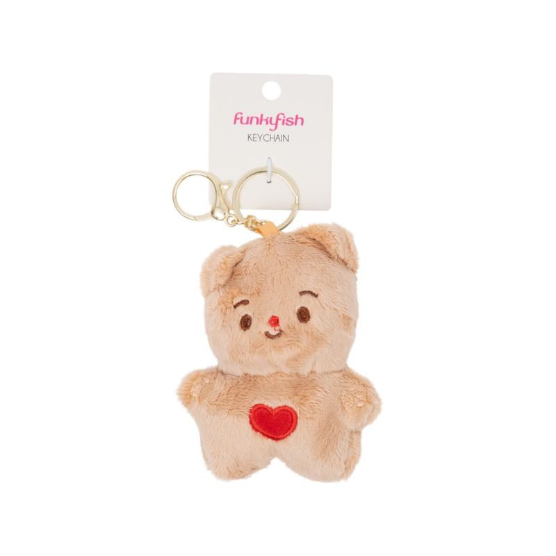 Comparte un detalle especial con estos Llaveros Funky Fish de ositos. El diseño en peluche rosado y café destaca por llevar un corazón místico bordado en el pecho. Son accesorios extra suaves, perfectos para colgar en tu bolso y demostrar cariño de una forma dulce y creativa.