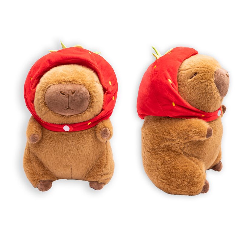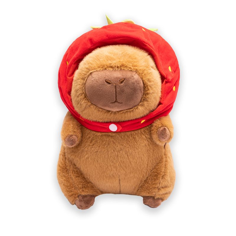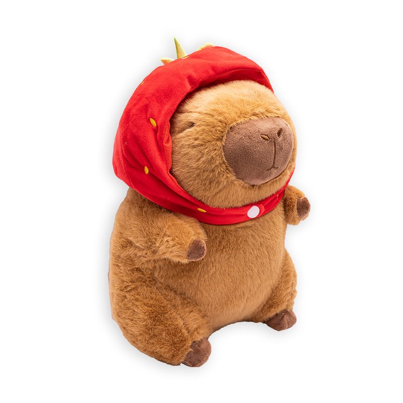 Un capibara tan dulce como una fresa. Con su adorable sombrero frutal, este peluche Funky Fish es perfecto para abrazar y darle un toque kawaii a cualquier lugar. Ideal para coleccionistas y amantes de lo cute.