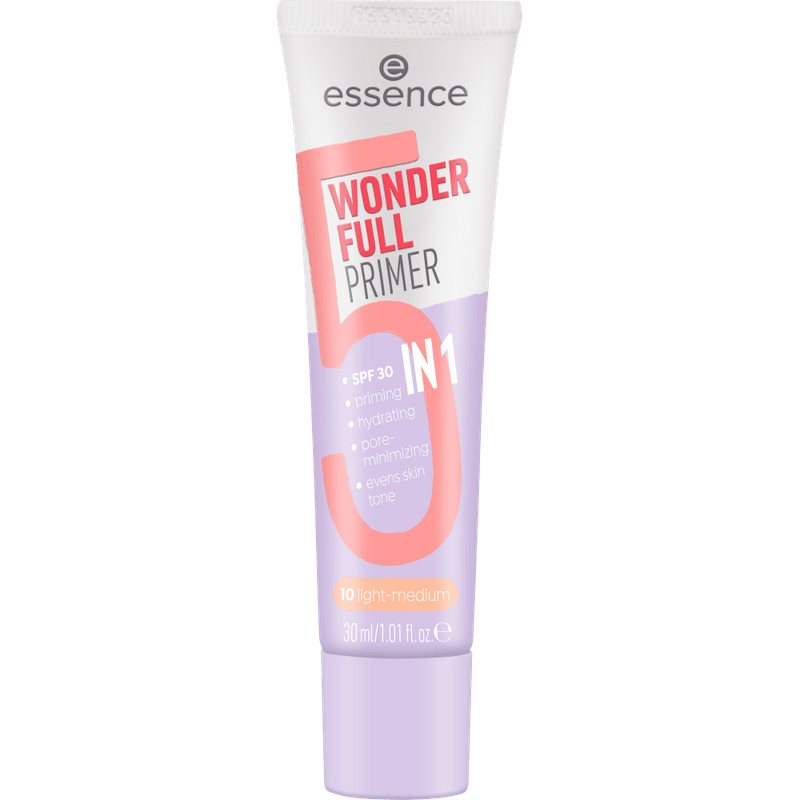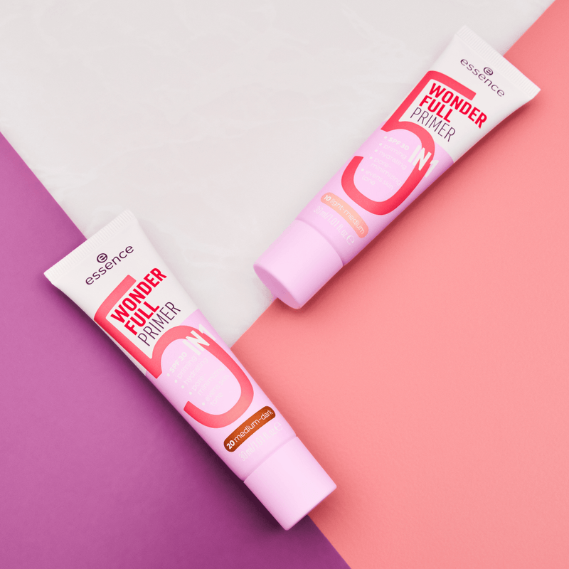 Primer Wonder Full 5 en 1 Essence: Este primer multifuncional prepara la piel para un maquillaje impecable. Hidrata, suaviza y matifica, creando una base perfecta que mejora la textura de la piel. Además, controla el brillo y proporciona un acabado uniforme, asegurando que el maquillaje dure todo el día.