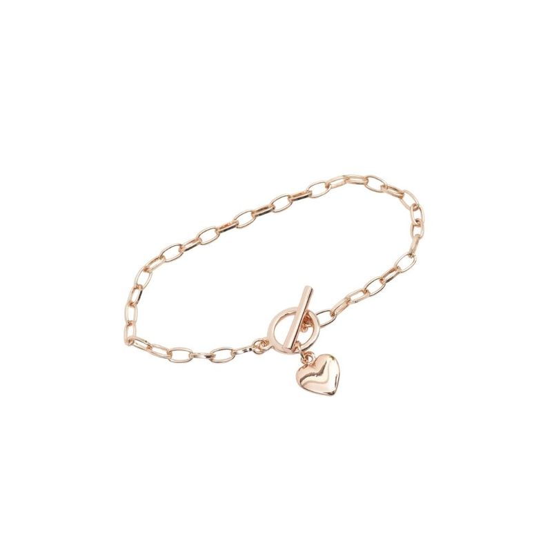 La sofisticación se une al sentimiento con la Pulsera Bañado en Oro Funky Fish. Su diseño de cadena destaca por un elegante cierre tipo timón, del cual cuelga un dije de corazón pulido con acabado espejo. Es una pieza mística y atemporal que aporta un brillo distinguido a tu muñeca.