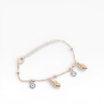 Lleva la magia del mar y la mejor energía en tu muñeca con esta Pulsera Bañado en Oro Funky Fish. Su diseño de cadena fina con charms de ojo turco y conchas doradas crea un contraste único, ideal para quienes buscan un accesorio místico que destaque con elegancia y frescura.