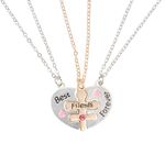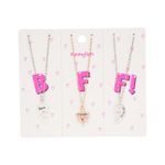 Celebra un vínculo único con este Set de Collares Funky Fish en color plateado. El diseño místico presenta tres dijes tipo rompecabezas que forman un corazón con las leyendas "Best", "Friends" y "Forever". Un accesorio creativo y brillante, ideal para compartir con tus personas favoritas.
