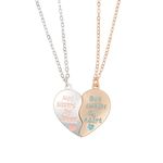 Celebra un vínculo único con este Set de Collares Funky Fish en colores surtidos. El diseño místico presenta tres dijes tipo rompecabezas en tonos plateado y dorado que forman un corazón con leyendas de amistad. Un accesorio creativo y brillante, ideal para compartir con tus personas favoritas.