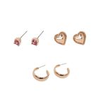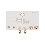 Crea combinaciones infinitas con este Set de Aretes Bañado en Oro Funky Fish. El conjunto incluye desde sutiles puntos de cristal rosado hasta corazones con relieve y aros dorados clásicos, ofreciendo un equilibrio místico entre la elegancia y la ternura para que brilles en toda ocasión.