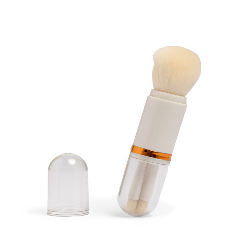 Completa tu maquillaje con este set de brochas en color blanco, diseñado para aplicar bases, sombras y polvos con precisión y suavidad. Sus cerdas suaves garantizan un acabado uniforme y profesional, perfecto para uso diario o para llevar en tu bolso.