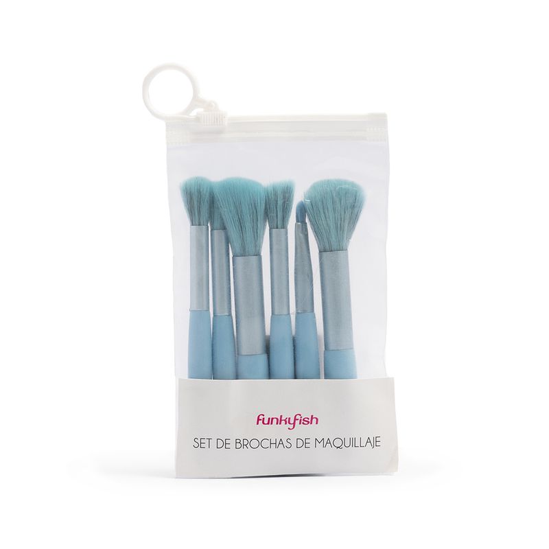 Completa tu maquillaje con este set de brochas en color celeste, diseñado para aplicar bases, sombras y polvos con precisión y suavidad. Sus cerdas suaves garantizan un acabado uniforme y profesional, perfecto para uso diario o para llevar en tu bolso.