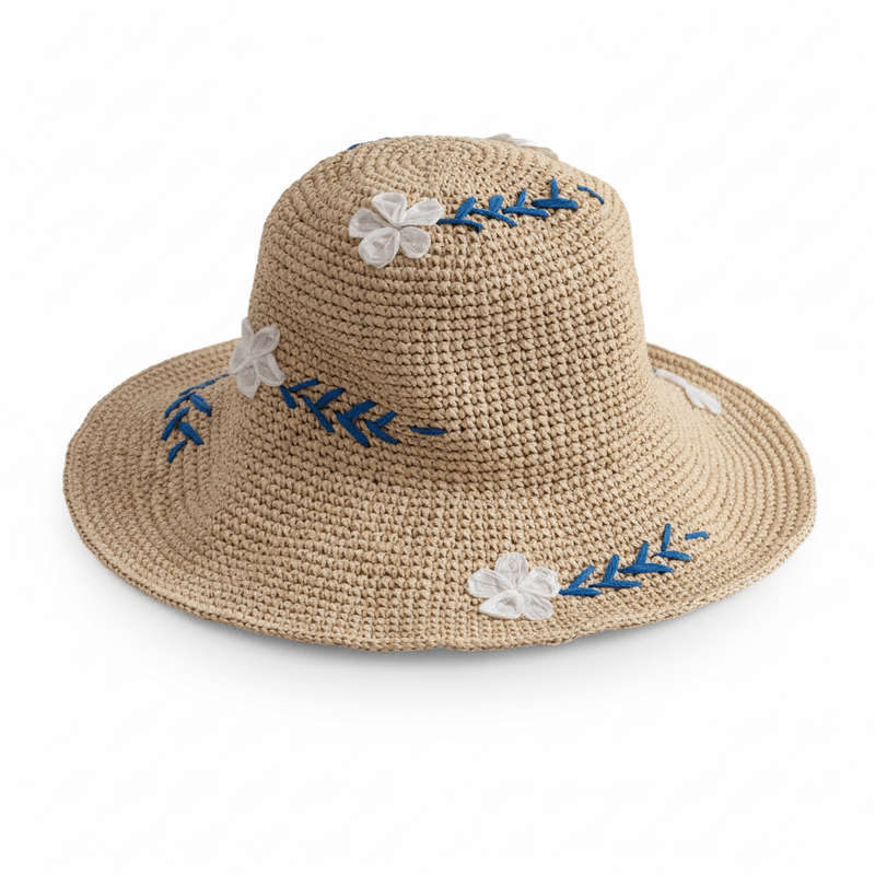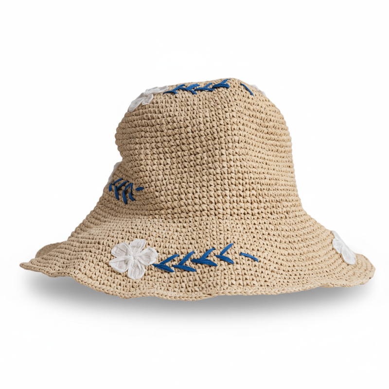 Sombrero floral azul ideal para complementar outfits informales y actividades al aire libre. Aporta un toque fresco y es fácil de llevar. ¡Compra online ya!