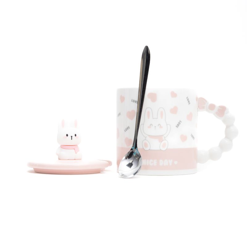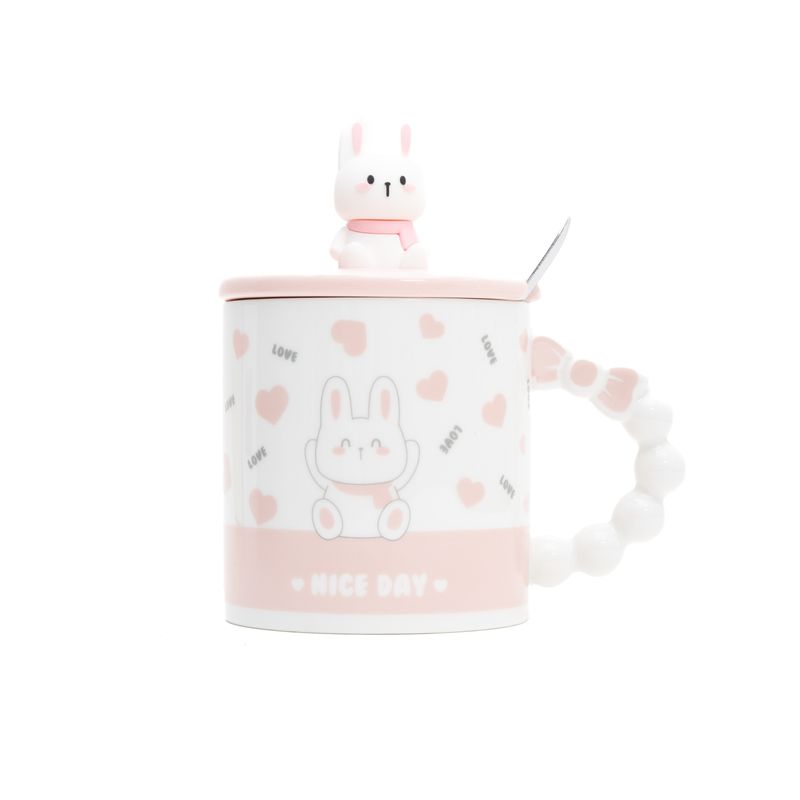 Taza Funky Fish con tapa de conejo blanca. Su estilo limpio y divertido es ideal para tu escritorio o cocina. Acompaña cada bebida con un toque encantador. Perfecta para regalar o usar a diario. ¡Compra online ya!