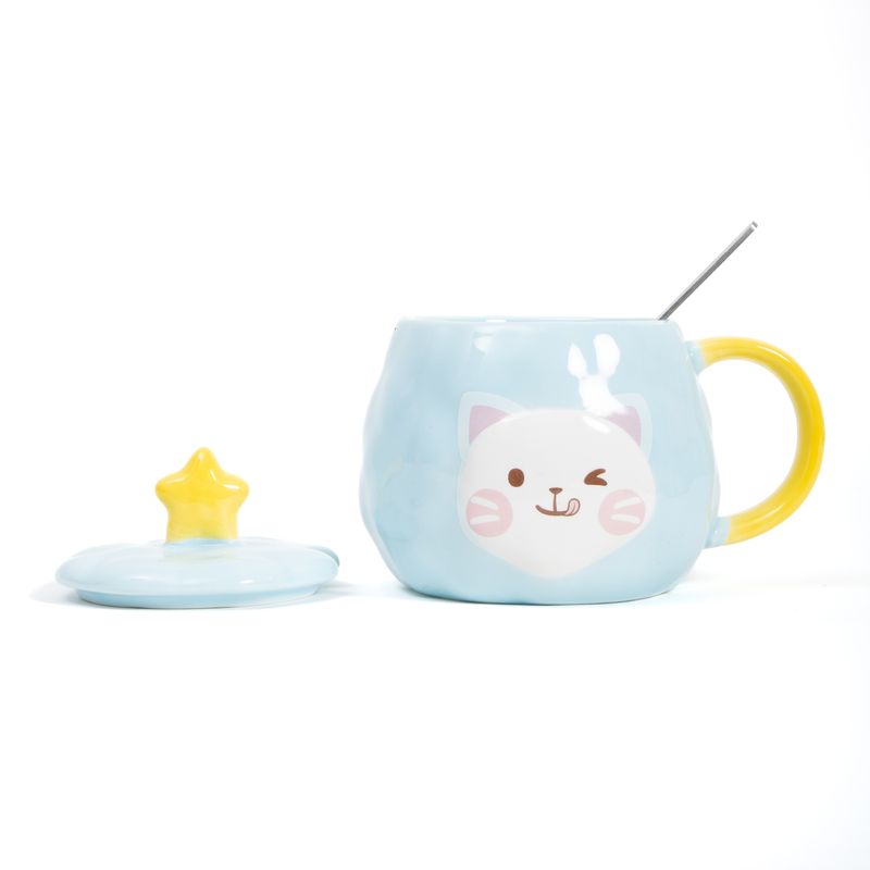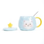 Taza redonda celeste con gatito. Perfecta para cualquier momento del día. • Diseño delicado • Tamaño cómodo • Fácil de manipular • Para hogar u oficina. Disfruta cada sorbo con estilo. ¡Compra online ya!