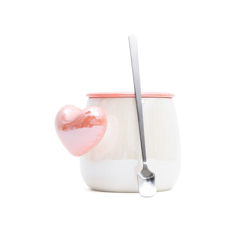 Taza Funky Fish corazón rosa. Su diseño romántico y moderno es ideal para regalar o disfrutar tus bebidas favoritas. La tapa protege el contenido y mantiene el calor por más tiempo. ¡Compra online ya!