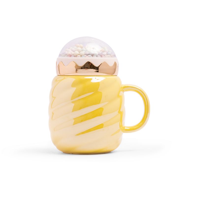Con un color amarillo pastel que irradia alegría, esta taza con tapa parece sacada de un sueño dulce. Su forma curva recuerda a una suave espuma de leche. Perfecta para acompañar tus bebidas favoritas con un aroma que evoca vainilla tibia y rayos de sol.