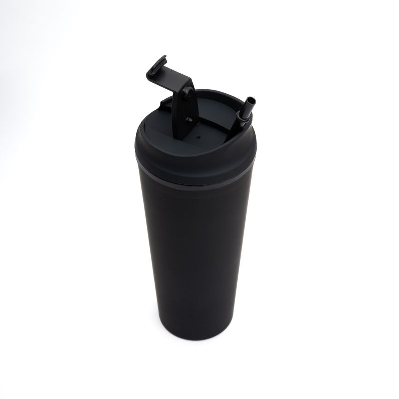 Vaso negro con tapa pensado para quienes necesitan llevar bebidas de forma sencilla. • Compacto • Fácil de transportar • Cierre práctico • Ideal para uso diario. Úsalo en cualquier momento. ¡Compra online ya!