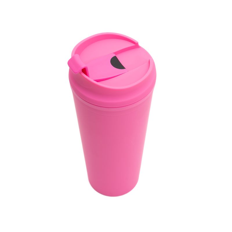 Vaso rosado con tapa diseñado para acompañarte durante el día. • Portátil • Ligero • Fácil de usar • Ideal para actividades cotidianas. Una opción funcional para bebidas rápidas. ¡Compra online ya!
